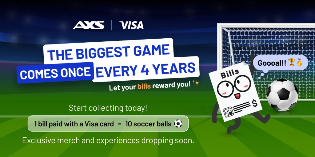 Pay your bills with a Visa card and earn Soccer Balls with every payment.