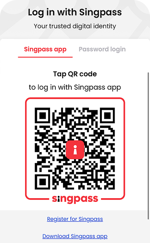 - Log in securely using Singpass.