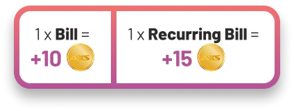 Earn an additional 30 Coins for every 3 bills paid.